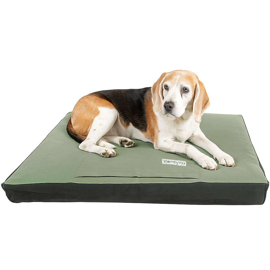 Our Intermediate Sized Dog Bed from the Komfy K9™ Veterinarian Line is made of the highest quality foam for maximum therapeutic comfort and support. They are wrapped with a rugged material that is waterproof and easy to sanitize and keep clean.